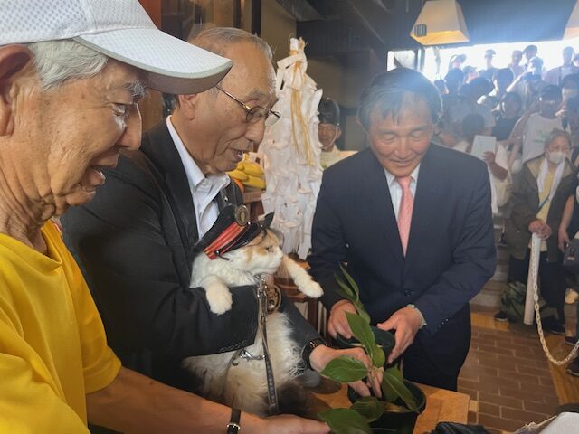 また、たま駅長に、県勲公爵(けんくんこうしゃく)・わかやまでナイトの称号を与えた元和歌山県知事の仁坂吉伸(にさか・よしのぶ)さんも、来賓として臨席し、たま駅長が和歌山の観光に寄与し、和歌山電鐵の再生に繋がったと、功績を讃えました。