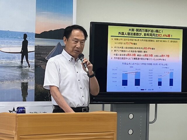 和歌山市内に宿泊施設が増えたことも一つの要因ですが、市の調査では、大阪・関西万博の開催に伴う宿泊者が増えているとみられています。これは、万博会場周辺の宿泊施設が混雑していることや宿泊料金が高騰していることで、大阪に比べ、宿泊料金に割安感があり、大阪から1時間圏内にある和歌山市で宿泊するケースが増えたのではないかということです。