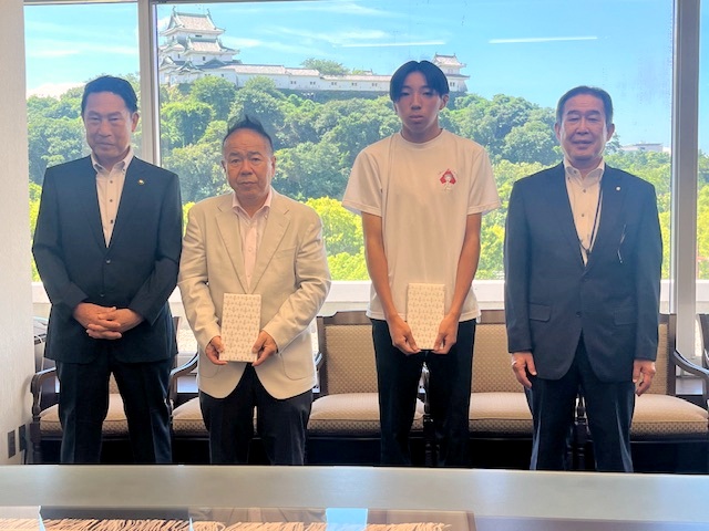 参加の報告を受けた尾花市長は、乾さんを激励しました。