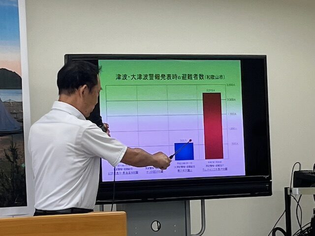 和歌山市の尾花正啓(おばな・まさひろ)市長は、避難所の暑さ対策を重視し、冷房のある教室などに避難してもらったと説明し、避難した市民の数が、東日本大震災の時よりも大幅に増えたことについては、「防災に対する市民の意識が