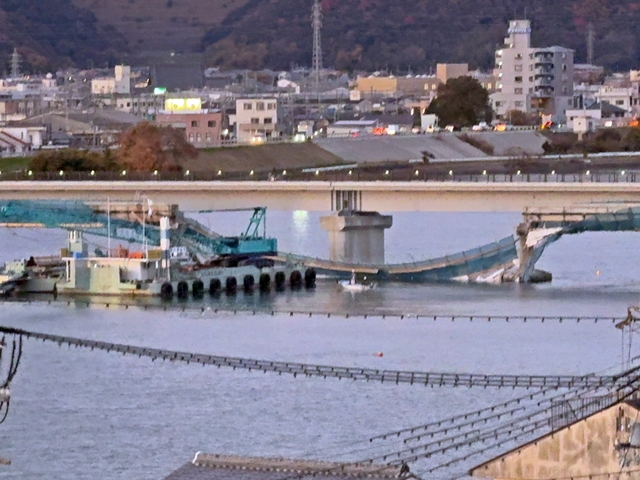 和歌山市によりますと、きょう(5日)午前9時前、橋の中心部付近でおよそ40メートルにわたって橋の上部の一部などが崩落したもので、けが人はなく、市民生活への支障はないということです。