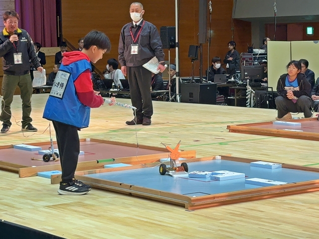 きょうは、全国の小・中学生による自作ロボットの対戦競技が行われたほか、県内の高校生による輪投げロボットの競技も行われました。