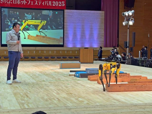 また、全国高専ロボットコンテストで優秀な成績を収めた学校によるダイナミックな動きが持ち味の実演や、大手建設会社が開発した、犬のような機体で建設現場を四足歩行で自在に歩き回る実用ロボット「Spot」のデモンストレーションも行われました。