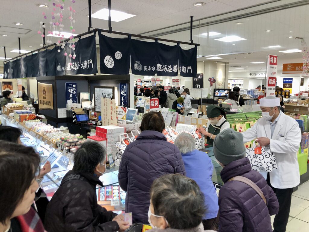 地下食品売り場は特に混雑した(近鉄百貨店和歌山店)