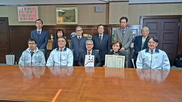 和歌山市に拠点を置く企業経営者らで構成する社会奉仕団体「和歌山東南(とうなん)ロータリークラブ」が、市内中心部のけやき大通りに設置する木製のベンチ7基を和歌山県に寄贈することになり、きょう(1月7日)小林一三(こばやし・いちぞう)会長が宮﨑泉知事に目録を贈呈しました。
