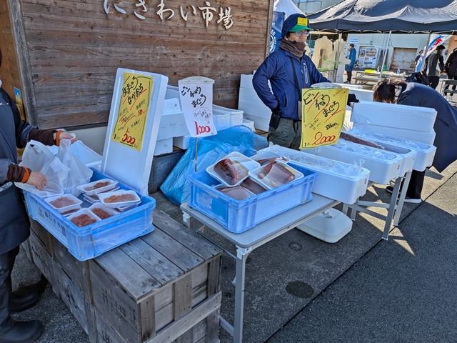 これは、地元の観光団体が漁協やホテルなどと連携して、きょうから来月(2月)7日まで開いているものです。きょう午前9時から那智勝浦漁港で開かれ、本マグロや近海物の生マグロが割安で販売されたり、缶バッジやカラー絵はがきの作成の体験なども行われ、多くの観光客らで賑わいました。