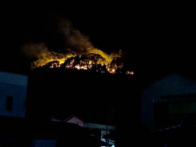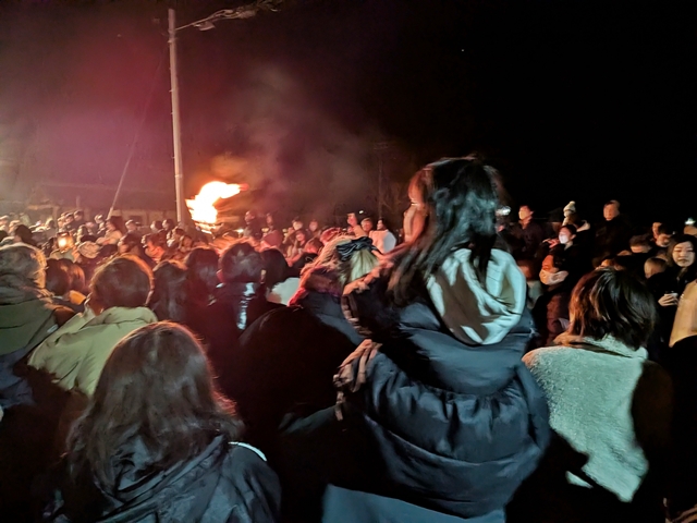 山上全体に火がいきわたった午後8時ごろ、山門が開くと上り子たちは雄叫びを上げながらいっせいに駆け下り、ふもとで待つ観客らが歓声を上げて迎えました。