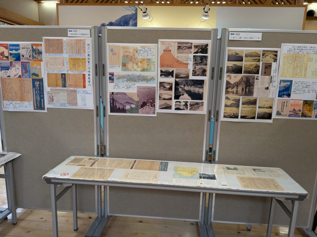 特別展では国立公園指定に向けての地域活動の様子が分かる資料や、吉野熊野国立公園を旅行先とした戦前から戦中戦後の団体募集チラシやパンフレットなどが展示され当時の紀南の盛況ぶりがうかがえる内容となっています。