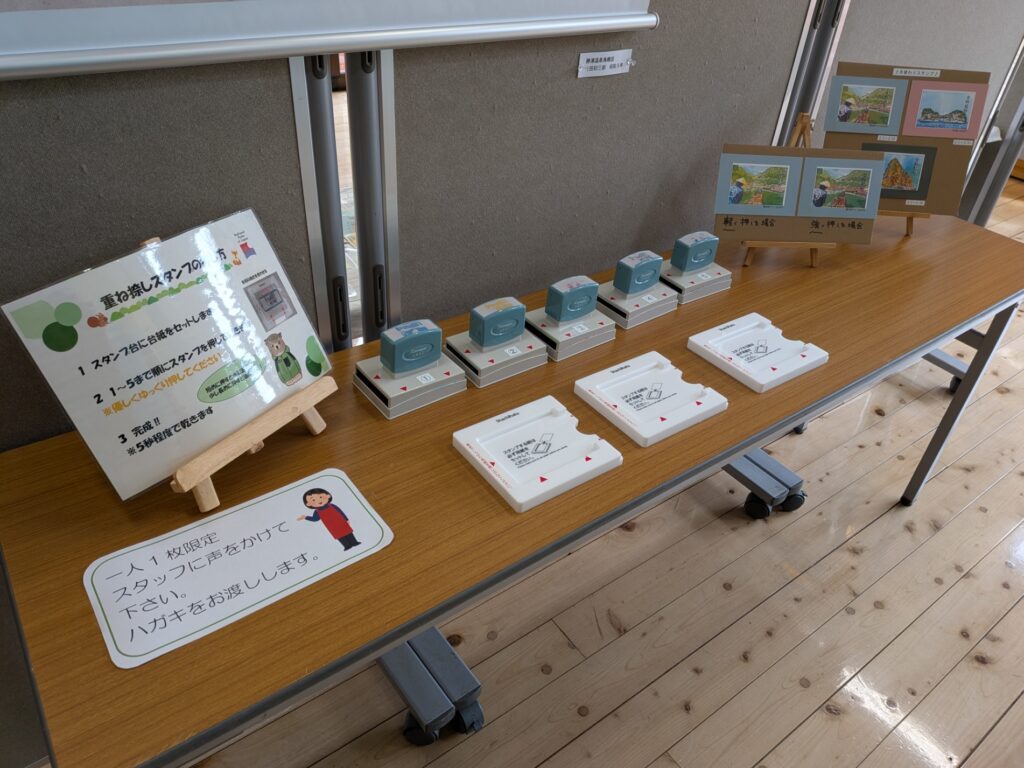 またそれに合わせ館内には吉野熊野国立公園内の美しい風景を絵画風に表した重ね押しスタンプが設置され、訪れた人たちの人気を集めています。