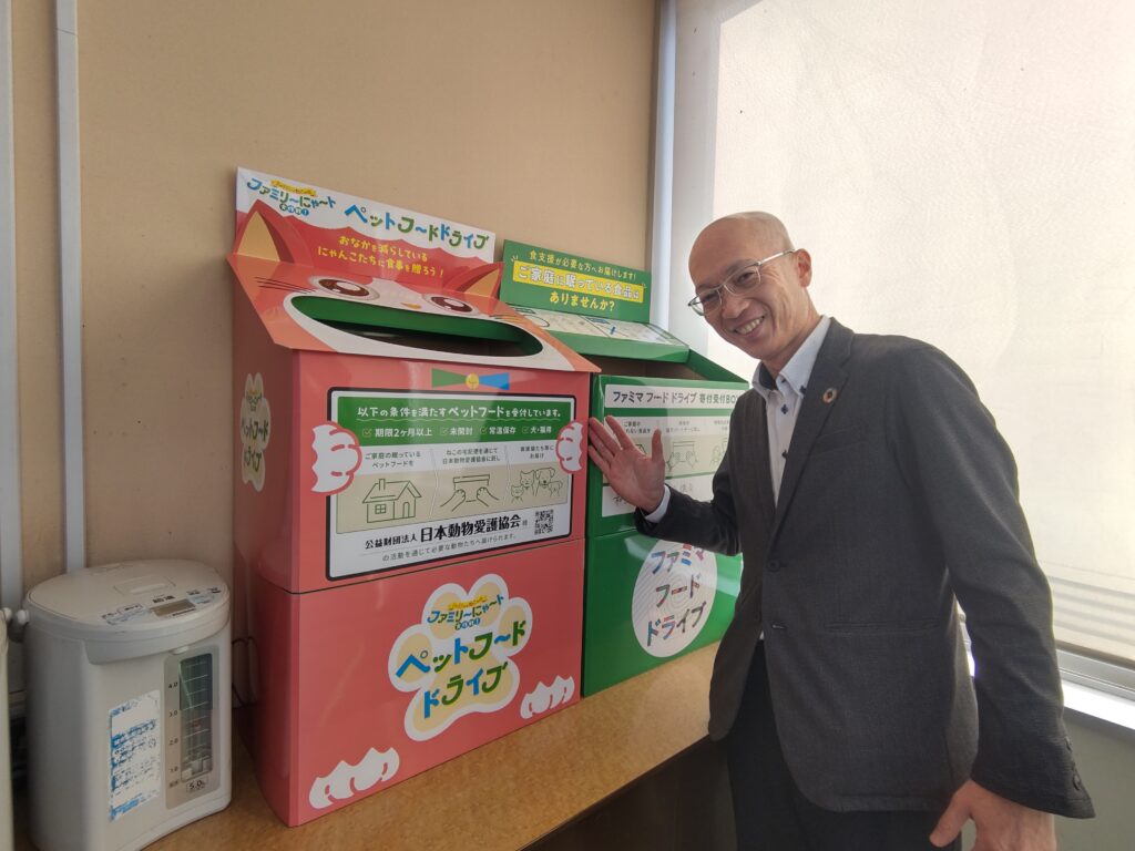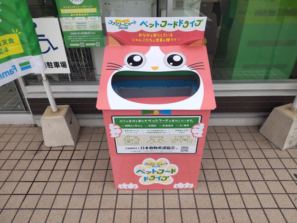 2月22日の「ねこの日」に合わせ、保護猫活動を支援する「ファミリ~にゃ~トペットフードドライブ」が和歌山市内のファミリーマートで始まりました。
