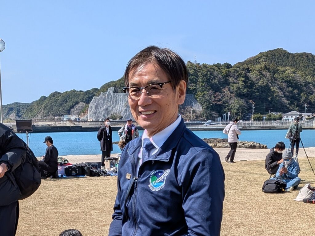 見学会場で、大勢の見学者とともに打ち上げを見守っていた地元・串本町の田嶋勝正(たしま・かつまさ)町長は「残念ですね」と感想をもらしたあと、「次の4号機の成功に向けて、町としても全面的に協力していきたい」と話しました。そして、田嶋町長は「打ちあがった日を『串本ロケットの日』と条例で制定したい」と話し、次の成功に期待を寄せていました。