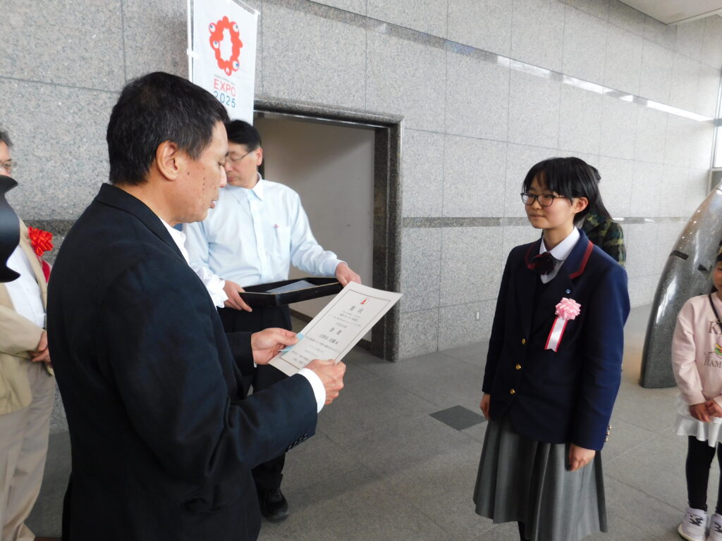 このほか、銀賞を受賞したのは、中学校の部が、河北中学校2年の和田陽莉(わだ・ひなり)さん、小学生の部が、宮北小学校2年の後藤優奈(ごとう・ゆうな)さん、宮小学校6年の中居莉菜(なかい・りな)さんでした。