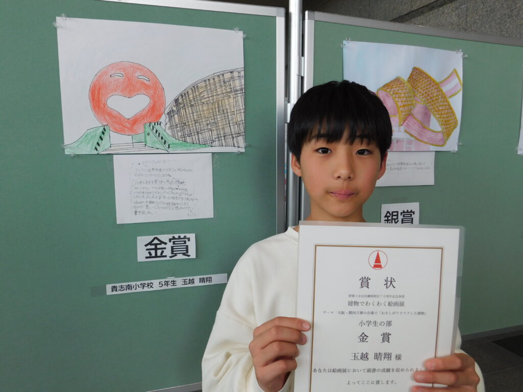 また、小学生の部の金賞は、貴志南小学校5年の玉越晴翔(たまこし・はれと)さん11歳で、「万博会場には、一度だけ行った。大屋根リングに、たくさん木を使っていこうということに共感した」と話していました。