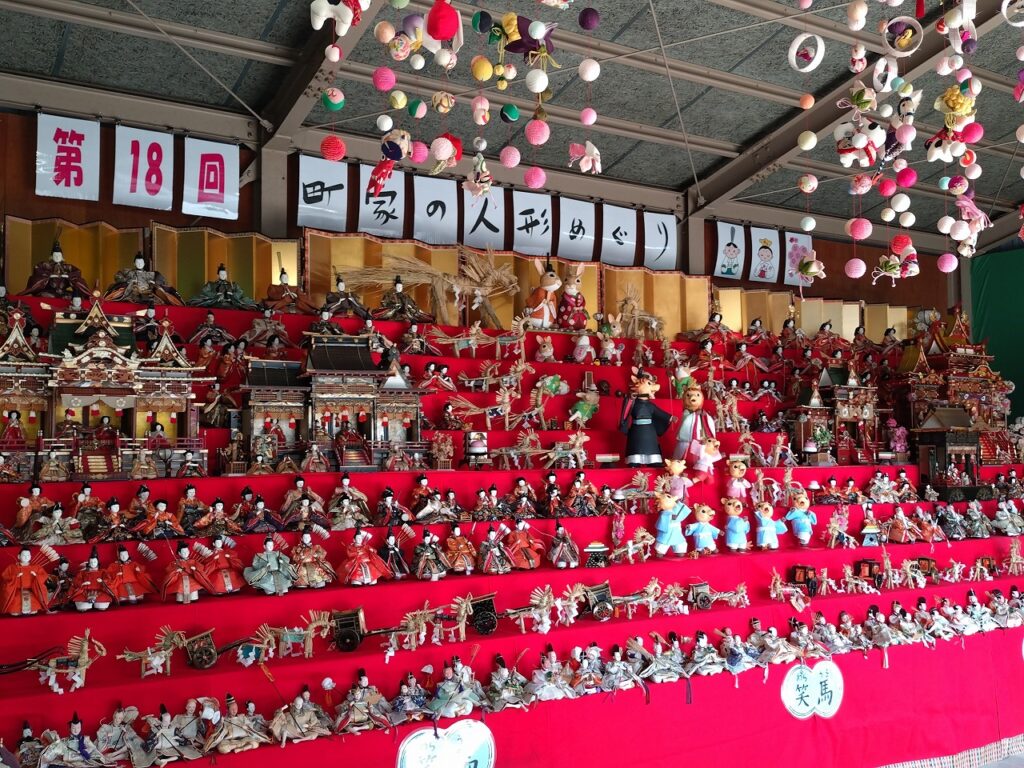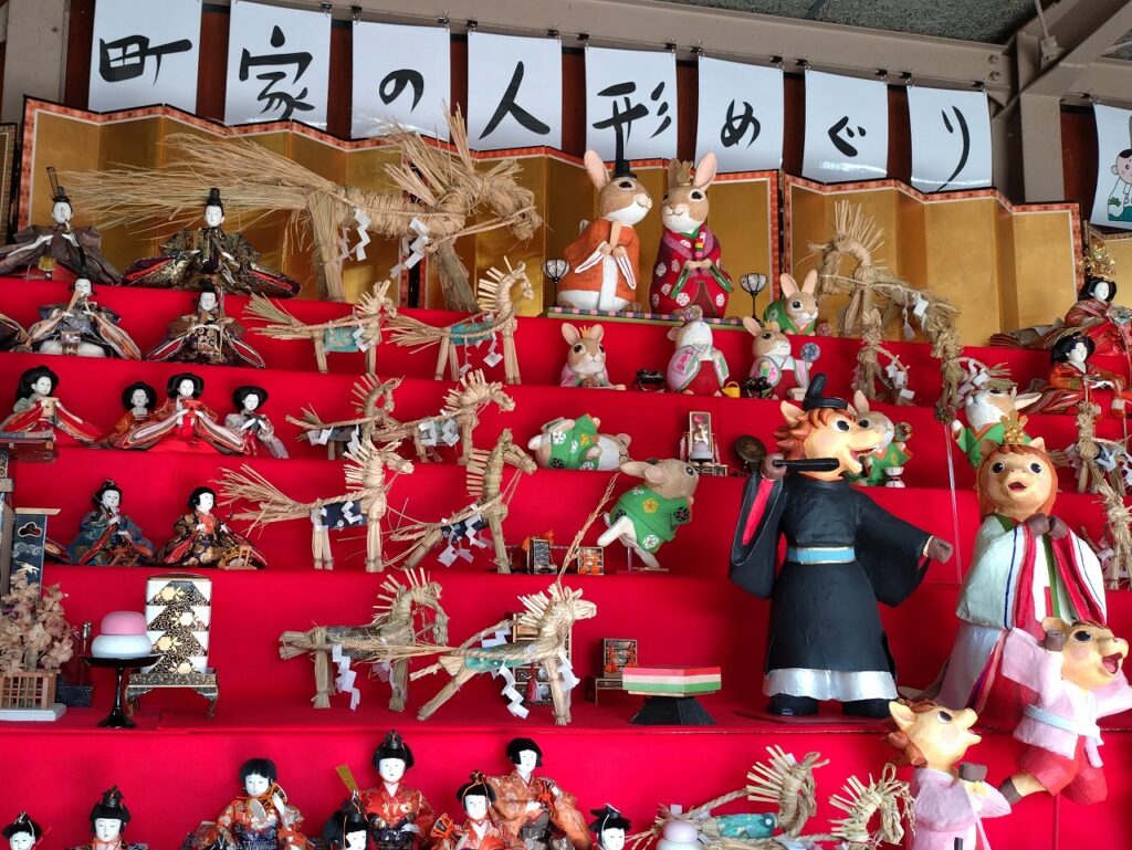 そして、特設展示場には、巨大な9段のひな壇や、時代物の御殿雛(ごてんびな)が飾られているほか、干支にちなんだ馬をモチーフにした人形や、住民らが作った藁(わら)の馬も展示され、ユニークな撮影スポットも設けられています。