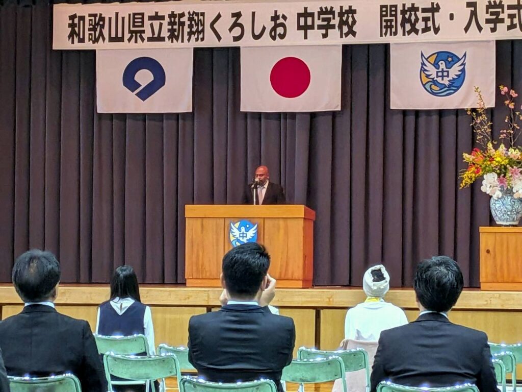 開校式では、和歌山県の今西宏行(いまにし・ひろゆき)教育長が開校を宣言、金澤亮(かなざわ・まこと)校長が、「踏み出す一歩一歩が、皆さんの人生の新たな可能性を切り開く、かけがえのない歩みとなるものと確信しています」と式辞を述べました。