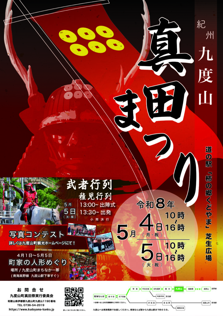 紀州九度山真田(さなだ)まつりが、来月(5月)4日と5日に、九度山町の道の駅「柿の郷くどやま」を中心に開かれます。