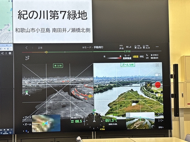 表示する素材は32種類まで入力でき、このうち、市が沿岸部に設置した津波避難カメラや、ドローンからの中継画像、それに、和歌山市が提携している国土交通省からの道路や河川の監視カメラの映像なども同時に表示でき、情報把握の効率がアップしています。