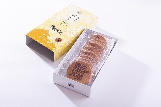 「豊臣たまごせんべい」は卵の優しい甘さを活かした2枚入りのせんべいが8袋入って税込み972円で、表面には「豊臣兄弟!」のタイトルロゴが焼き印されています。