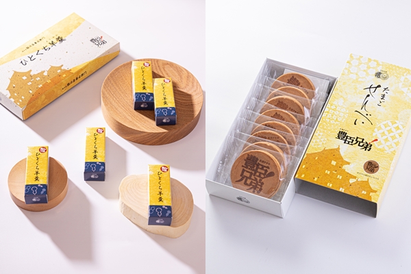 発売される和菓子は「豊臣ひとくち羊羹(ようかん)」と「豊臣たまごせんべい」の2種類で、どちらの商品にも、ことし(2026年)のNHK大河ドラマ「豊臣兄弟!」のタイトルロゴがデザインされています。